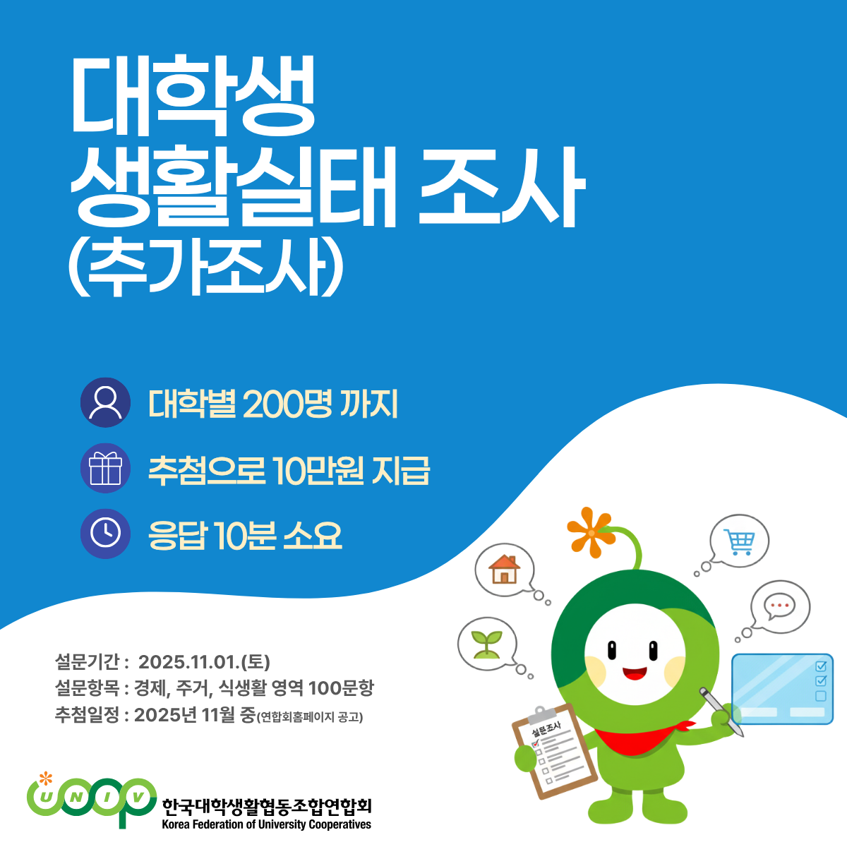 | 대학생활협동조합연합회 대학생 생활실태조사 진행 | |